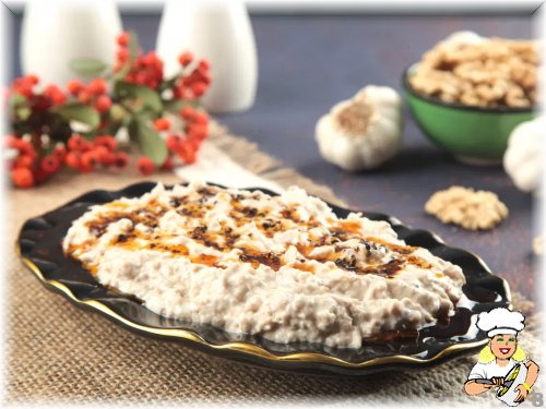 Ceviz içini, sarımsağı ve ekmek içlerini mutfak robotunda püre haline getirin. Tuz ekleyin.