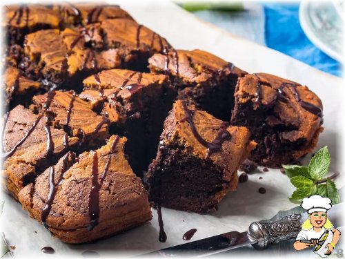 Büyük bir kek kalıbını erimiş margarin veya biraz sıvıyağ ile yağlayın. Üzerine yağlı kağıt yerleştirin. Bir başka yerde, bir kat alüminyum folyo ile yağlı kağıdı üst üste koyarak hazırlayın. Un, kakao ve kabartma tozunu büyükçe bir kapta karıştırın. Ortasını havuz gibi açın. Margarin, şeker, ince doğranmış çikolata ve vanilyayı bir tencereye alın. Ocakta, kısık ateşte çikolata, şeker ve margarin eriyinceye kadar karıştırın.