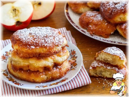 Yumurta, süt ve unu çırpın, 5 dakika dinlendirin. Elmayı kabuklarını soyup küp şeklinde doğrayın. Karanfili havanda dövüp, elmalarla beraber sütlü karışımın içine koyup, tarçın, kabartma tozu ve vanilyayı ilave edip karıştırın. Eritilmiş tereyağını da içine ekleyip tekrar karıştırın. Bu karışımı kepçeyle az yağlanmış sıcak tavaya döküp, iki yüzünü de 4 dakika pişirin. Üzerine pudra şekeri serpebilirsiniz ve yanında dondurma ile servis yapılabilirsiniz.