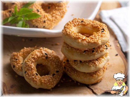 Ardından susam ve çörekotunu serpin ve 190 derecede önceden ısıtılmış fırında 15 – 20 dakika pişirin. Kandil simidi servis edilmeye hazır.