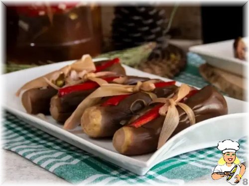 # Kavanoza aralarına dövülmüş sarımsak konarak, patlıcan dolmaları yerleştirilir.