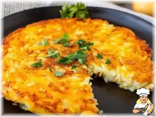 Patatesler haşlanır ve kabukları soyulur. Rendelenir, tuzla karıştırılır. Teflon tava tereyağı ile yağlanır. Rende patatesin yarısı tavanın yüzeyine az bastırarak yerleştirilir. Üzerine rende kaşar serpilir. En son kata kalan rende patates konur hafifce bastırılır. Tava orta ateşli ocağa konur. Altı kontrol ederek kızarınca krep pişirir gibi diğer yüzü çevrilir. İki yüzü kızarınca servis tabağına aktarılır. Üzerine et yada sebze yemeği konarak servise sunulur.