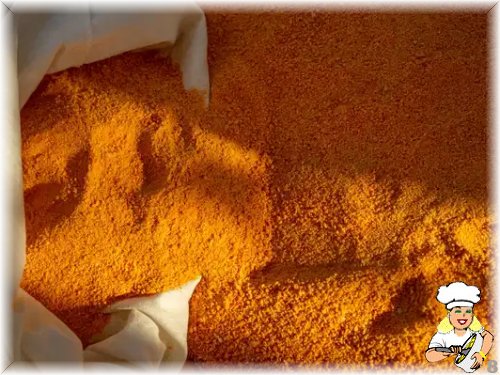 Kuruyan parçalar iyice ufalanır, elle ovularak ya da mutfak robotunda çekilerek un haline getirilir.