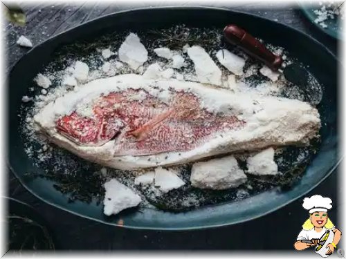 Balıkları yıkayıp iyice durulayın. Balıklardan biraz daha büyük bir tepsiye kolay temizlik amacıyla aluminyum folyo serin. Öncelikle 1 buçuk kg. kadar tuzu bir kapta yumurta akı ve yeterince su ile katı kıvamda karıştırın. Sulu olmamasına dikkat edin. Karışımın yaklaşık üçte biri ile balıklarınızı üzerine alacağınız iki tane yatak oluşturun. (balığın uzunluğunda dikdörtgen şeklinde) Balığın karnına defne yaprağı, maydanoz vs. ile doldurup kapatın ve tuz yatağına yerleştirin. Kalan yumurta aklı tuz ile balıkların her tarafını iyice kaplayın. Balığın hiçbir yeri görünmemelidir. Gerekirse biraz daha tuzla suyu katıca karıştırıp heryerini sıvayın. İsterseniz bıçak yardımıyla tuza balık şekli verip üzerine pullar çizebilirsiniz. Isıtılmış 200C- 220C dereceli fırında balığın büyüklüğüne göre 30-45 dakika arası pişirin. Ardından adi bir bıçak ve çekiç yardımıyla (veya büyük bir bıçağın sapıyla) balığa gelmeden dikkatlice tuzu kırın. Balığın derisinide sıyırdıktan sonra servis tabağına alıp salata ve patates kızartması ile servis yapın.